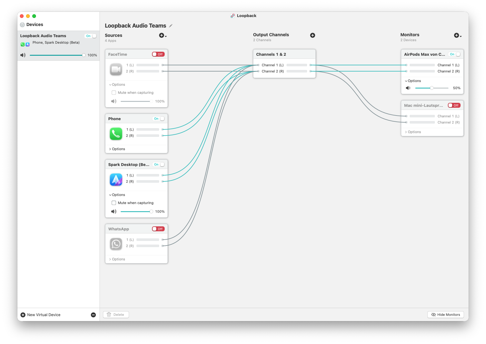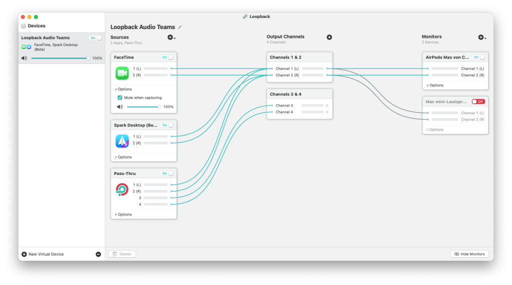 Loopback erlaubt es, beliebige Audioquellen virtuell zusammenzuführen und als neues Audio-Gerät bereitzustellen. Genau das braucht Spark.