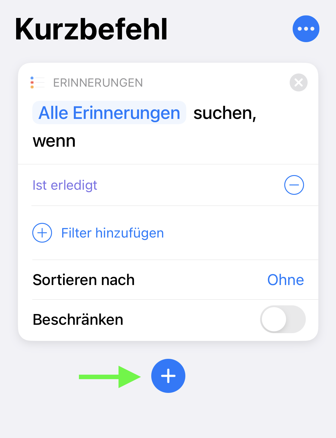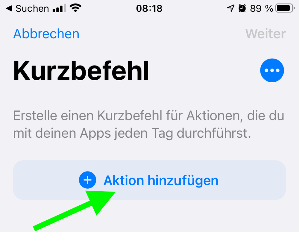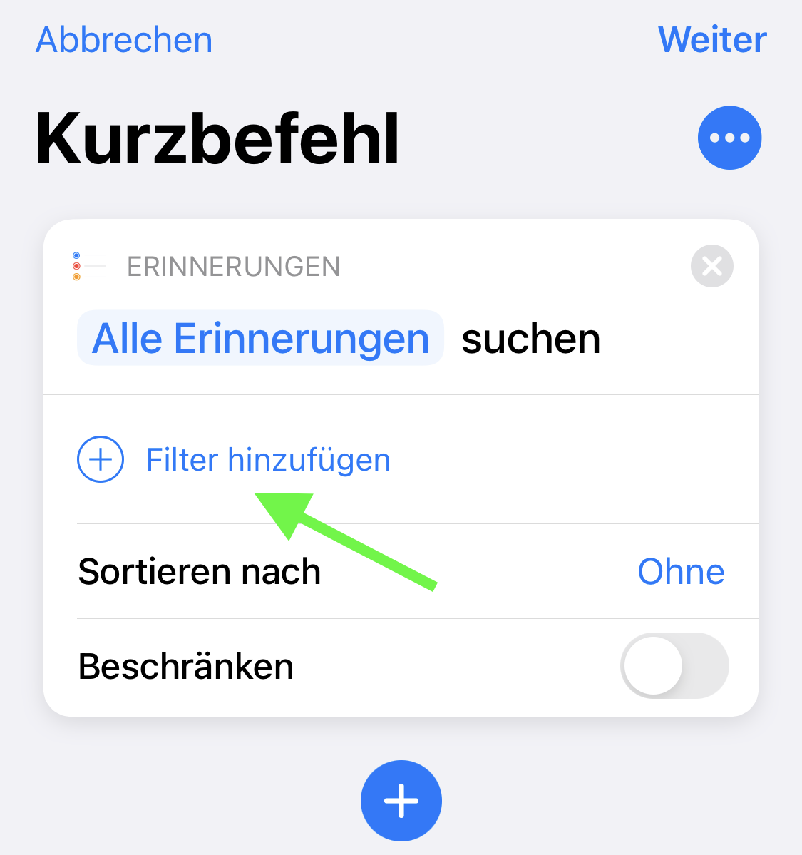 Um die nächste Aktion hinzuzufügen, tippen Sie auf das Pluszeichen (+).