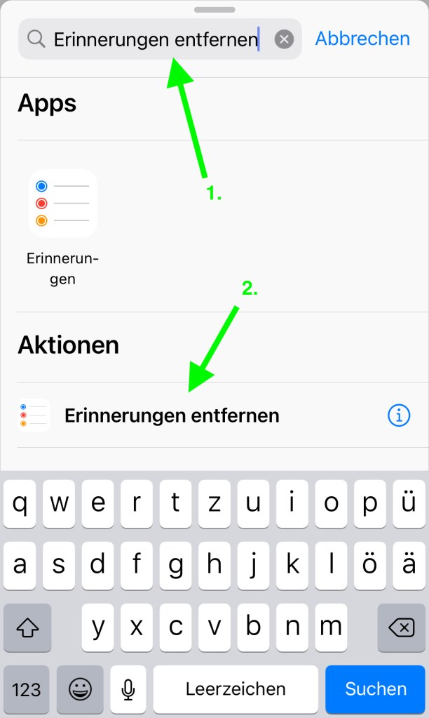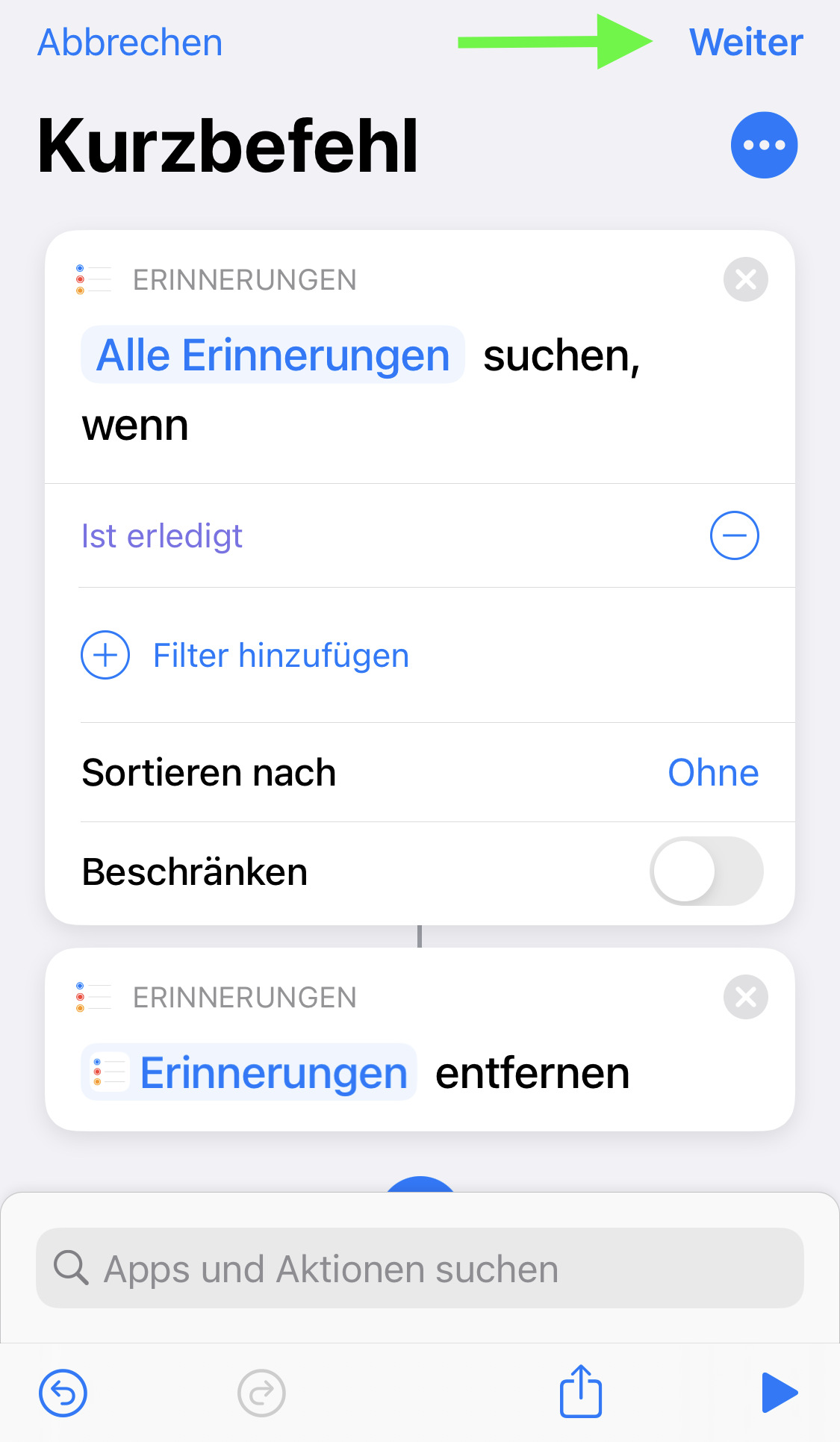 Alternativ können Sie sich die vorkonfigurierte Verknüpfung „Erinnerungen löschen- Kurzbefehl“ auch herunterladen