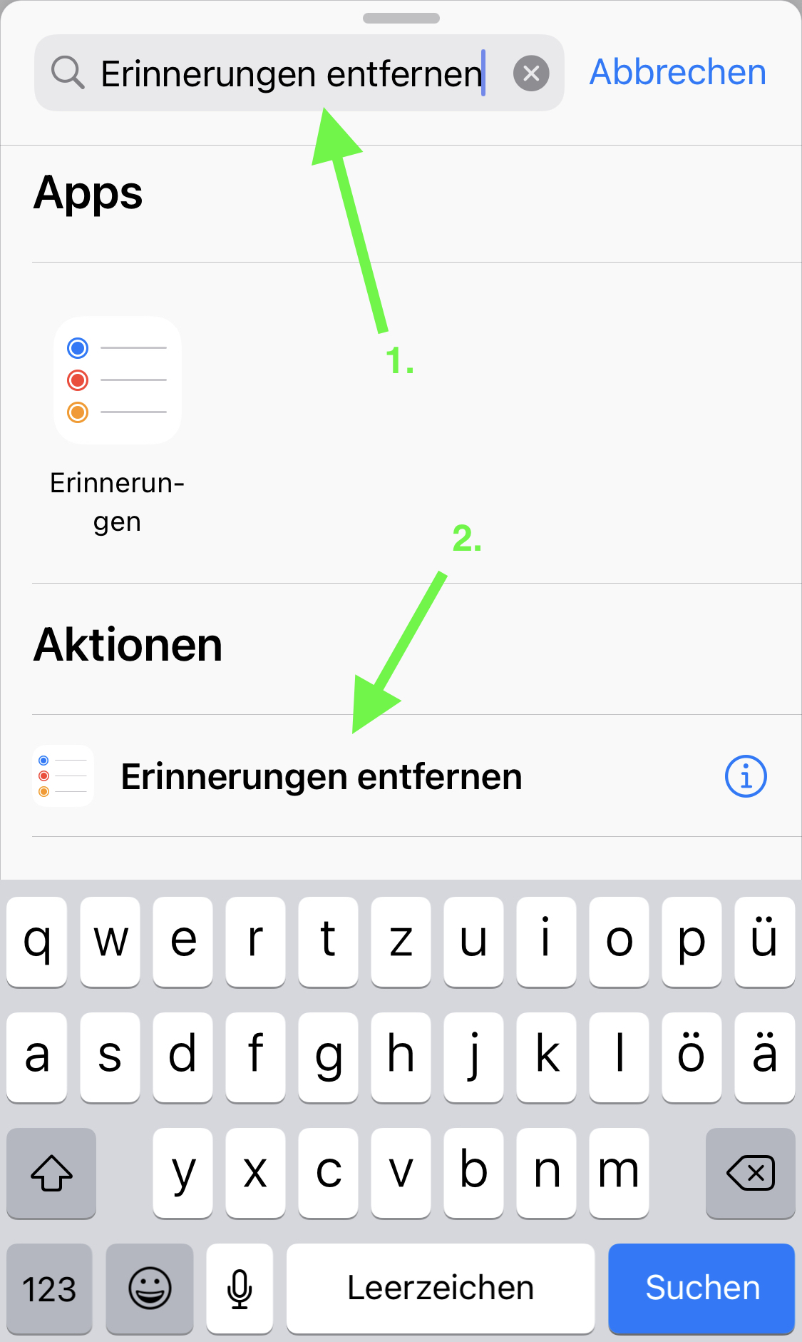 Tippen Sie „Erinnerungen suchen“ ein und wählen Sie „Erinnerungen suchen“.