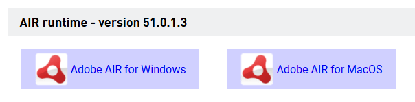 Dann kann die Datei hier für Windows und macOS heruntergeladen werden: Adobe AIR SDK & Compiler.