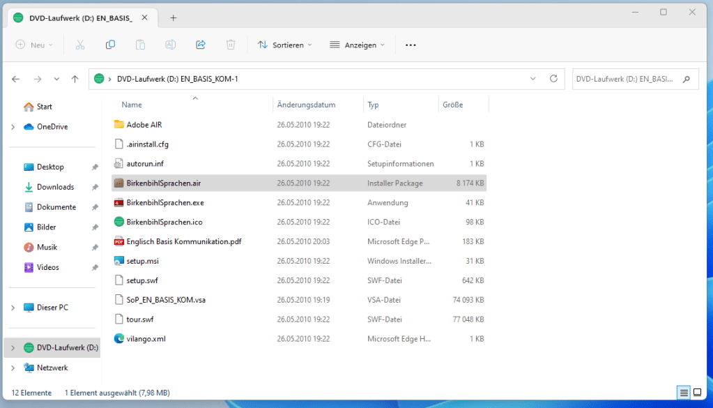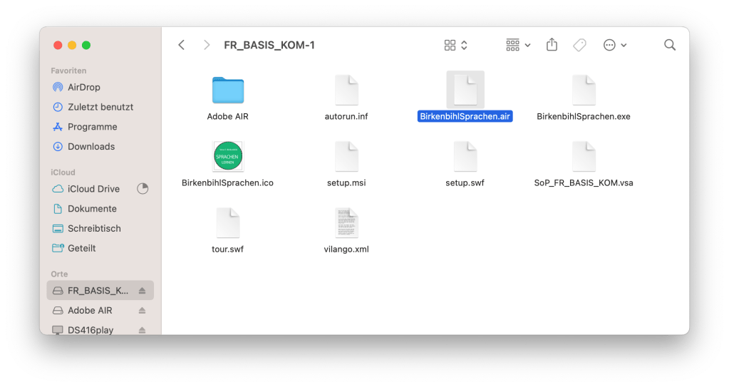 Um Die Birkenbihl Sprachen Software zu installieren, müsst Ihr die Air-Datei öffnen