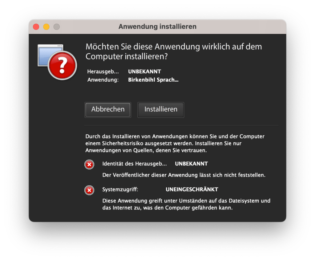 Falls sich die Birkenbihl Software am Mac mit M1 Chip nicht öffnen lässt, dann: