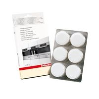 Miele bietet eigene sehr überteuerte Entkalkungstabletten um circa an. 6 Stück kosten €13,41. Das sind €2,235 pro Entkalkung. Bei sehr harten Wasserhärtegrad kann es schon mal sein, dass man sogar zwei Tabletten braucht, um ein sauberes Ergebnis zu erhalten. Zweifelhaft sind auch die Inhaltstoffe.